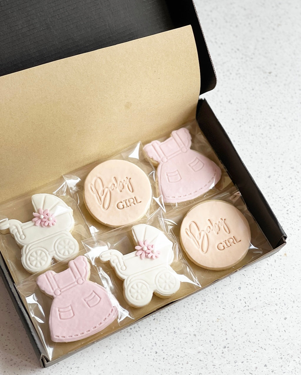 All of our cookies are homemade and flavoured with vanilla bean and topped with our own homemade marshmallow fondant. Cookies come individually wrapped and can last up to 6-8 weeks!