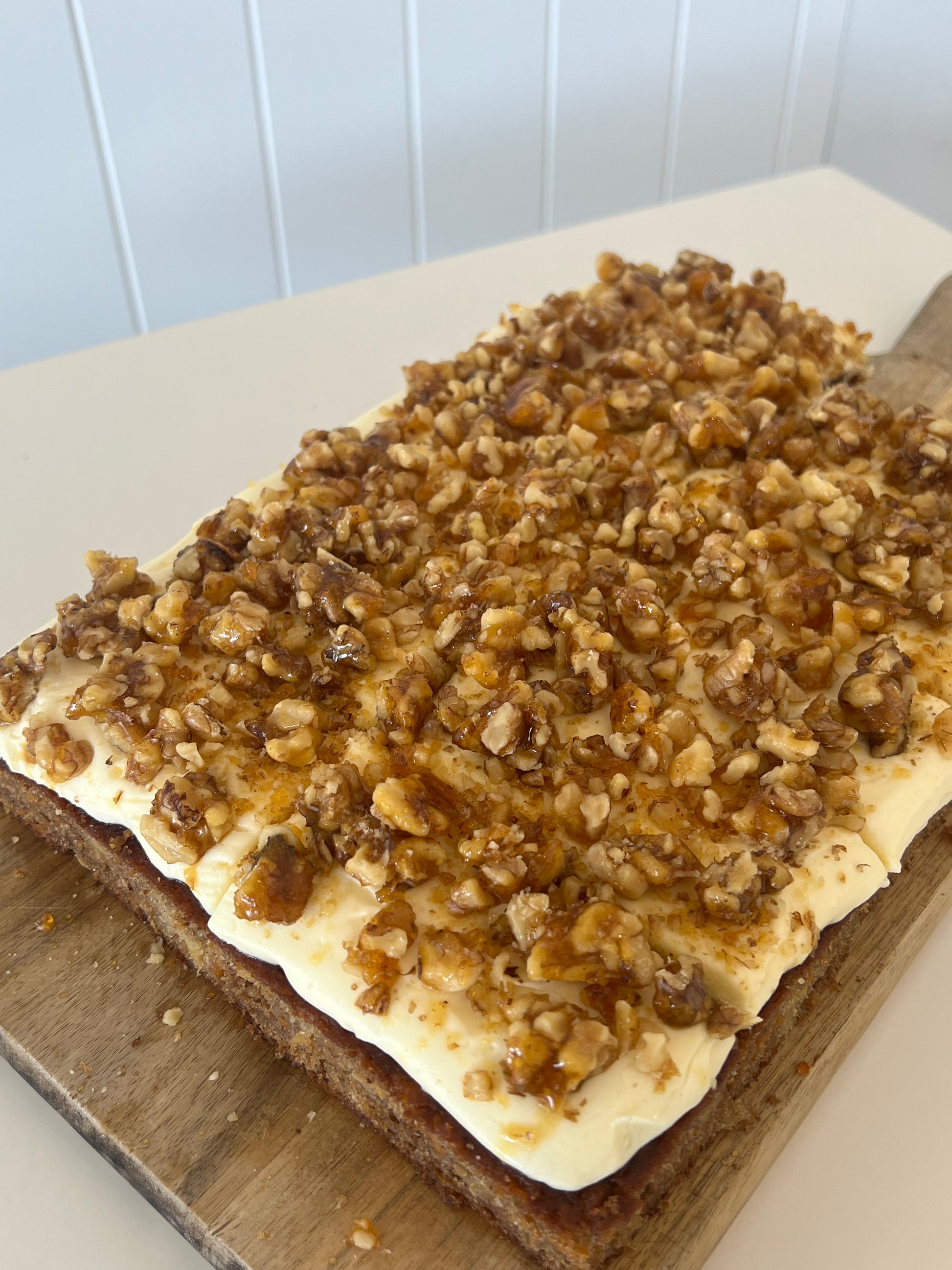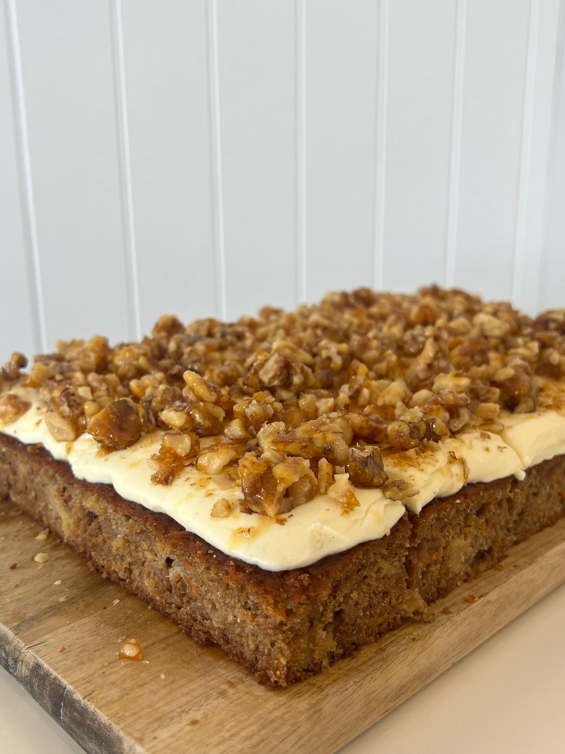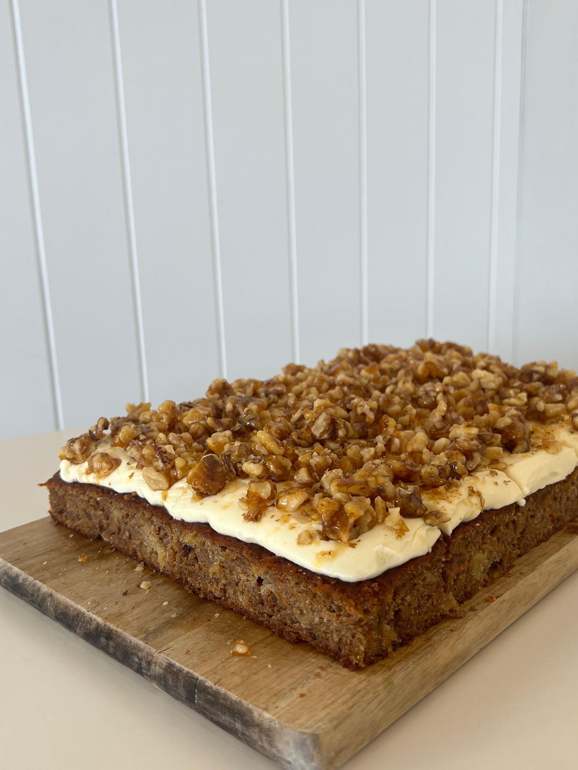 Indulge in our famous carrot cake, featuring a moist texture and a thick layer of rich cream cheese frosting. Topped with candied walnuts for added crunch and flavour, this dessert is a true delight for your taste buds. Satisfy your sweet tooth with every bite.