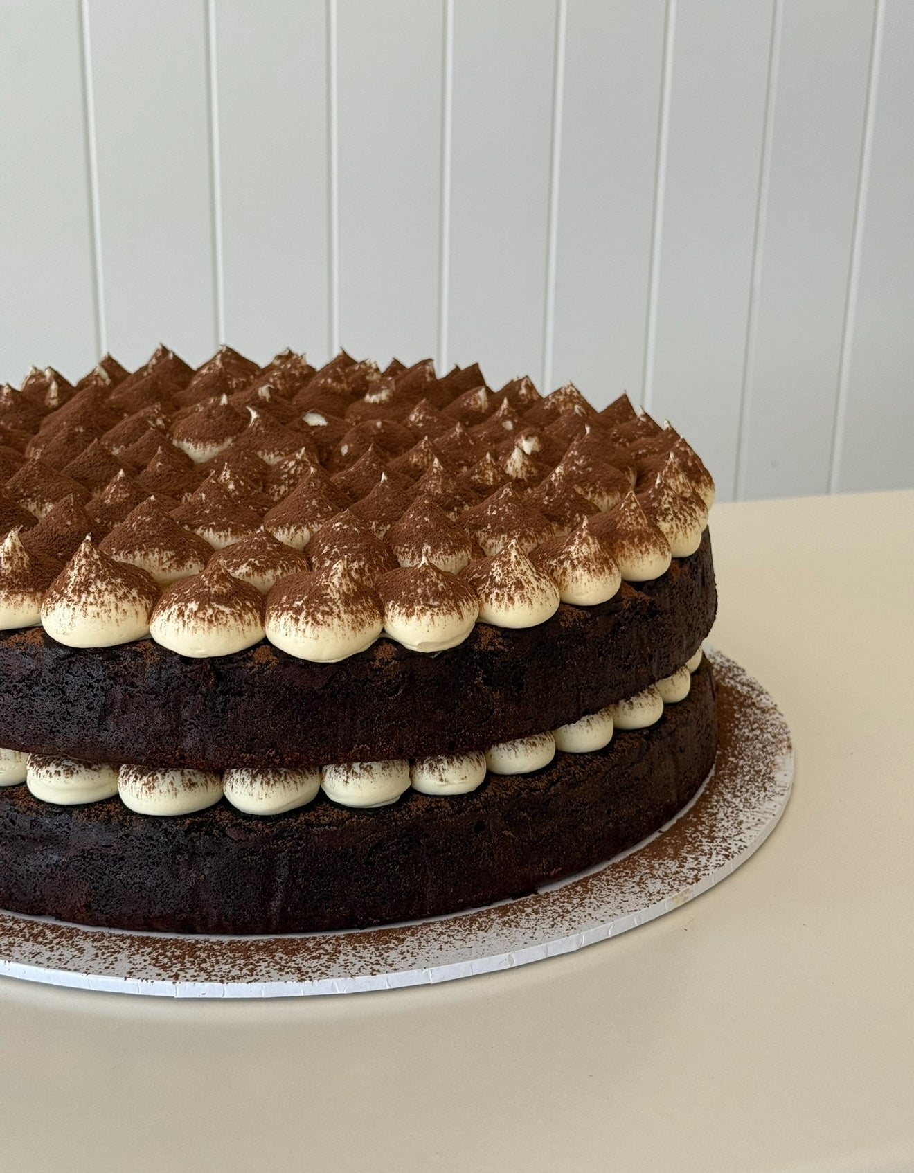 A luscious chocolate cake base soaked in our secret house-made espresso mix, layered with creamy mascarpone, and topped with a cheeky sprinkle of cocoa. It’s a fun twist on a classic that’s sure to be your new favourite