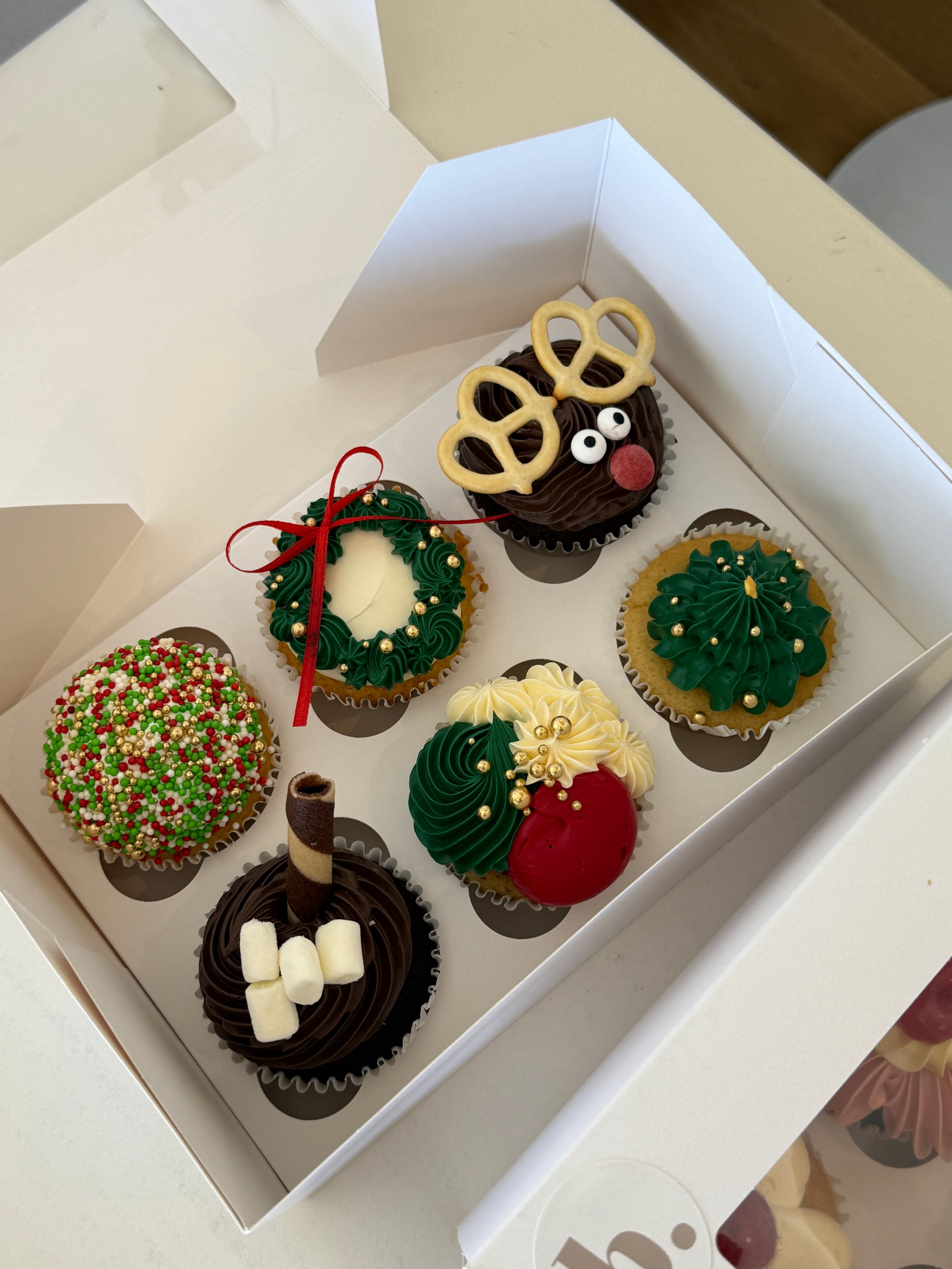 A mix of Vanilla, caramel and chocolate cupcakes.