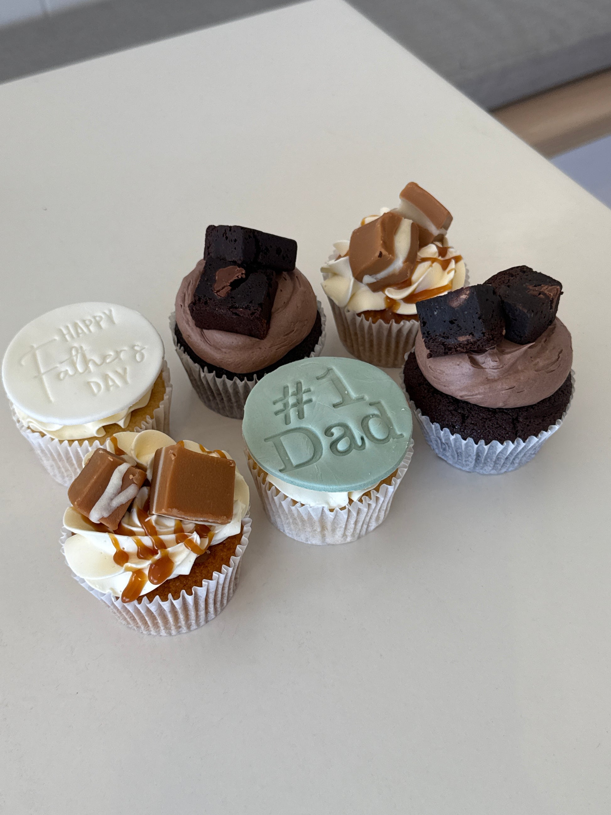 A mix of vanilla, caramel and chocolate cupcakes