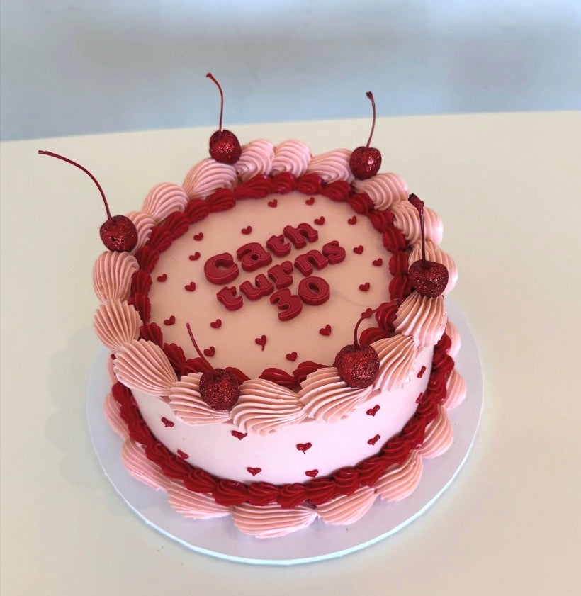 Pictured: Medium 2 layer, customer had also added love hearts all over and glitter cherries