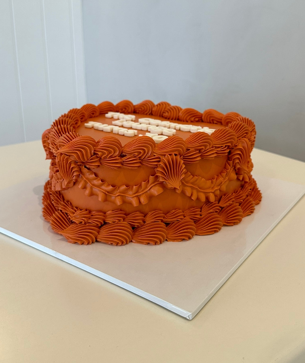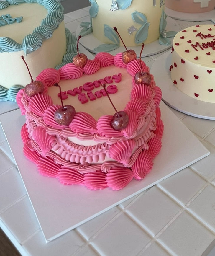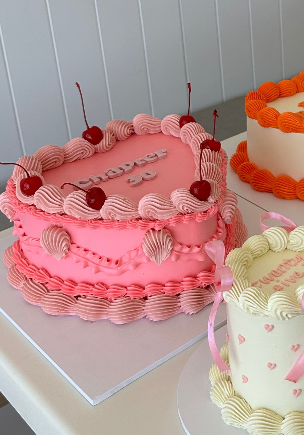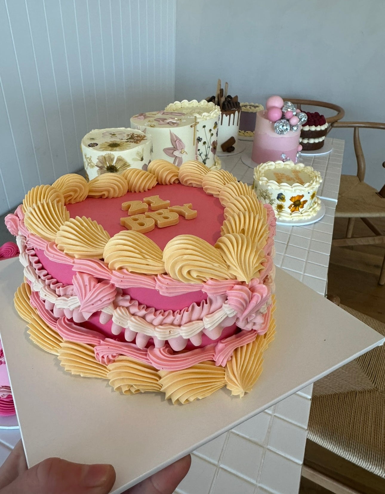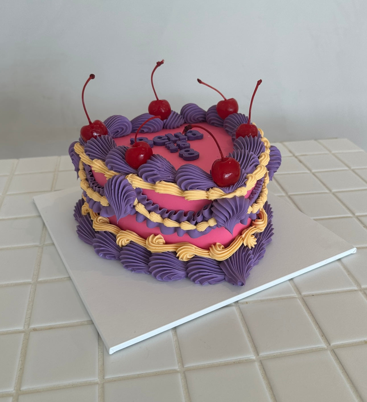 Please note: the 2 layer cakes may not have as much piping due to being shorter and having less space.