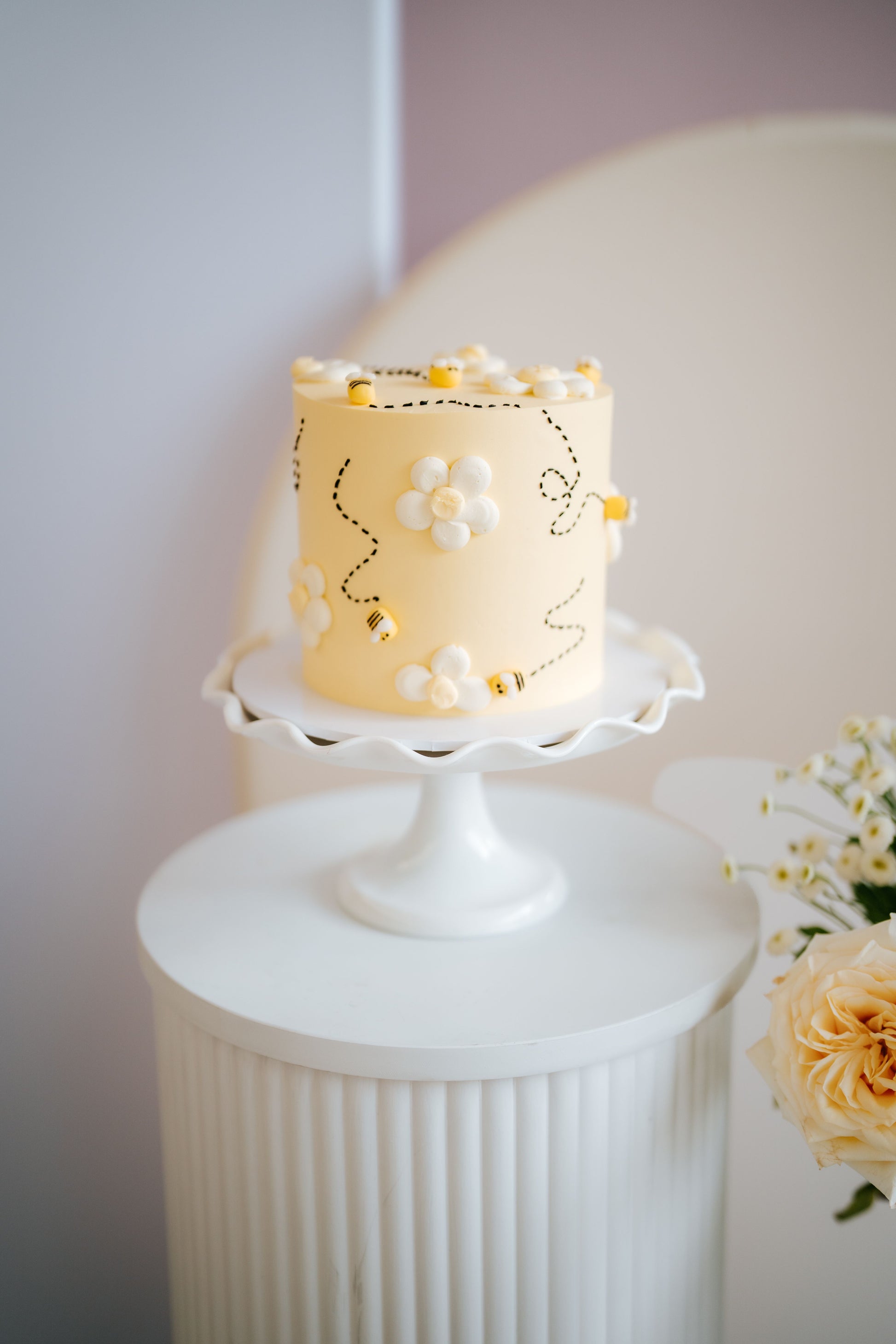 Expertly crafted, the Honey Bee cake features a realistic fondant bee and delicate buttercream flowers. Made with care and precision, this cake is a charming, delectable addition to any celebration. Enjoy its buzz-worthy design and delicious taste.
