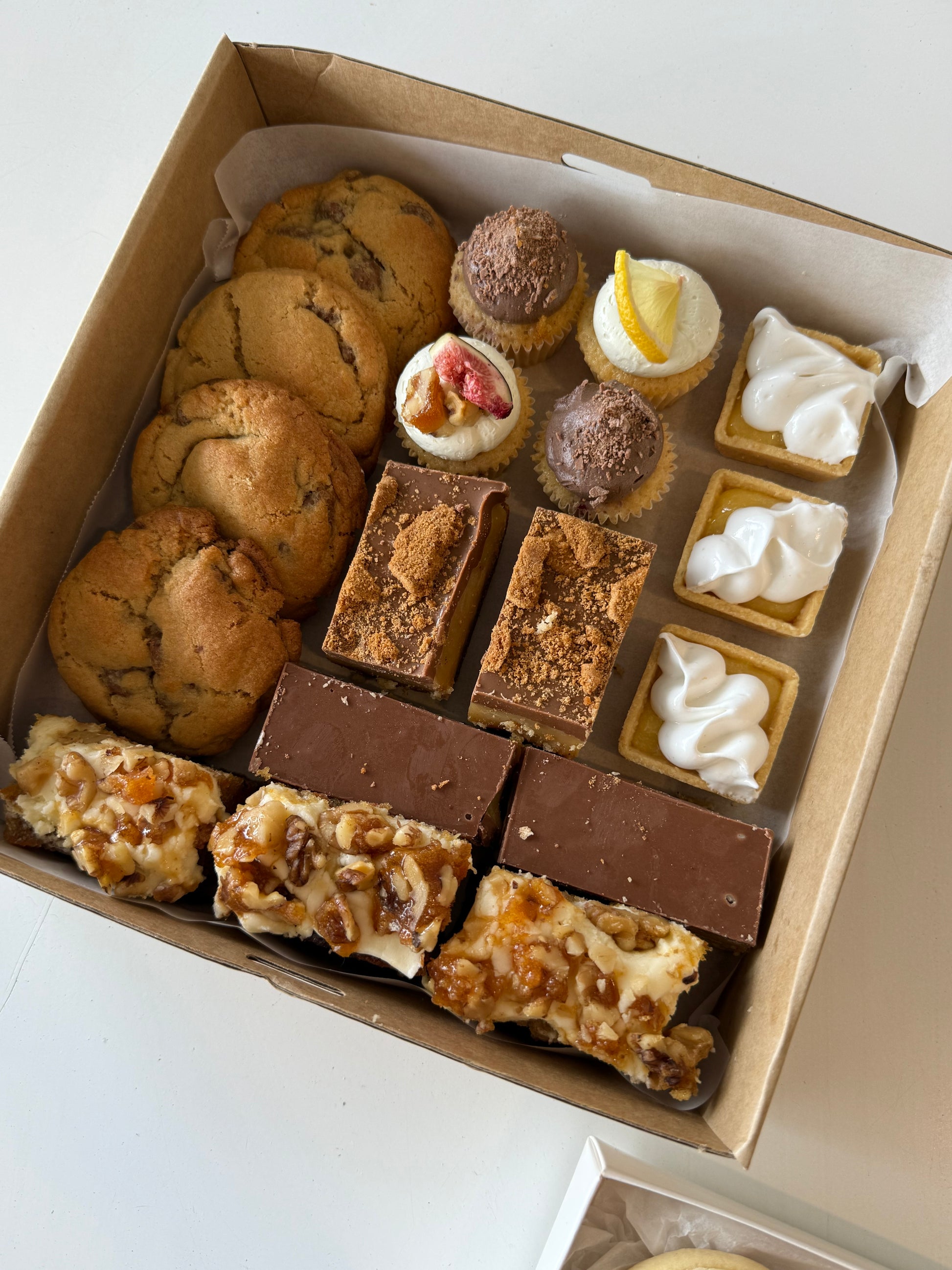 Small - 10 pieces (2 slices, 2 mini cookies, 2 cupcakes, 2 lemon meringue tarts, 2 pieces of carrot cake)