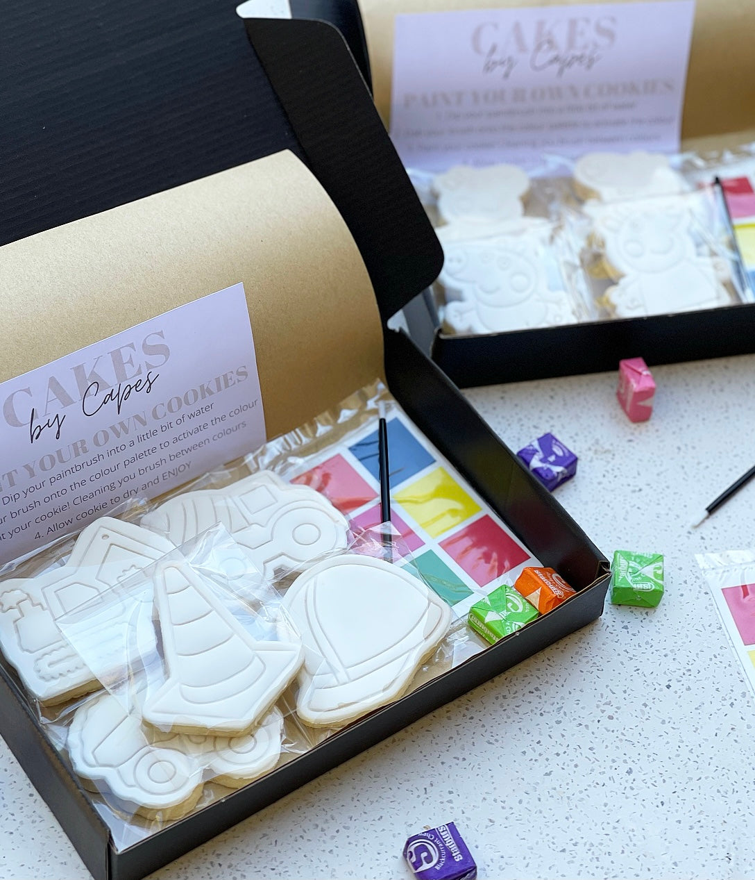 Pack comes with a number of cookies to decorate, a sheet of painting colours and a paint brush and some lollies! (Lollies in the box will vary)