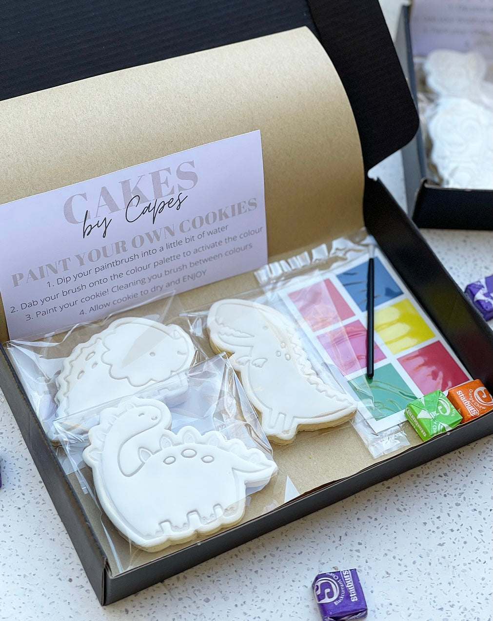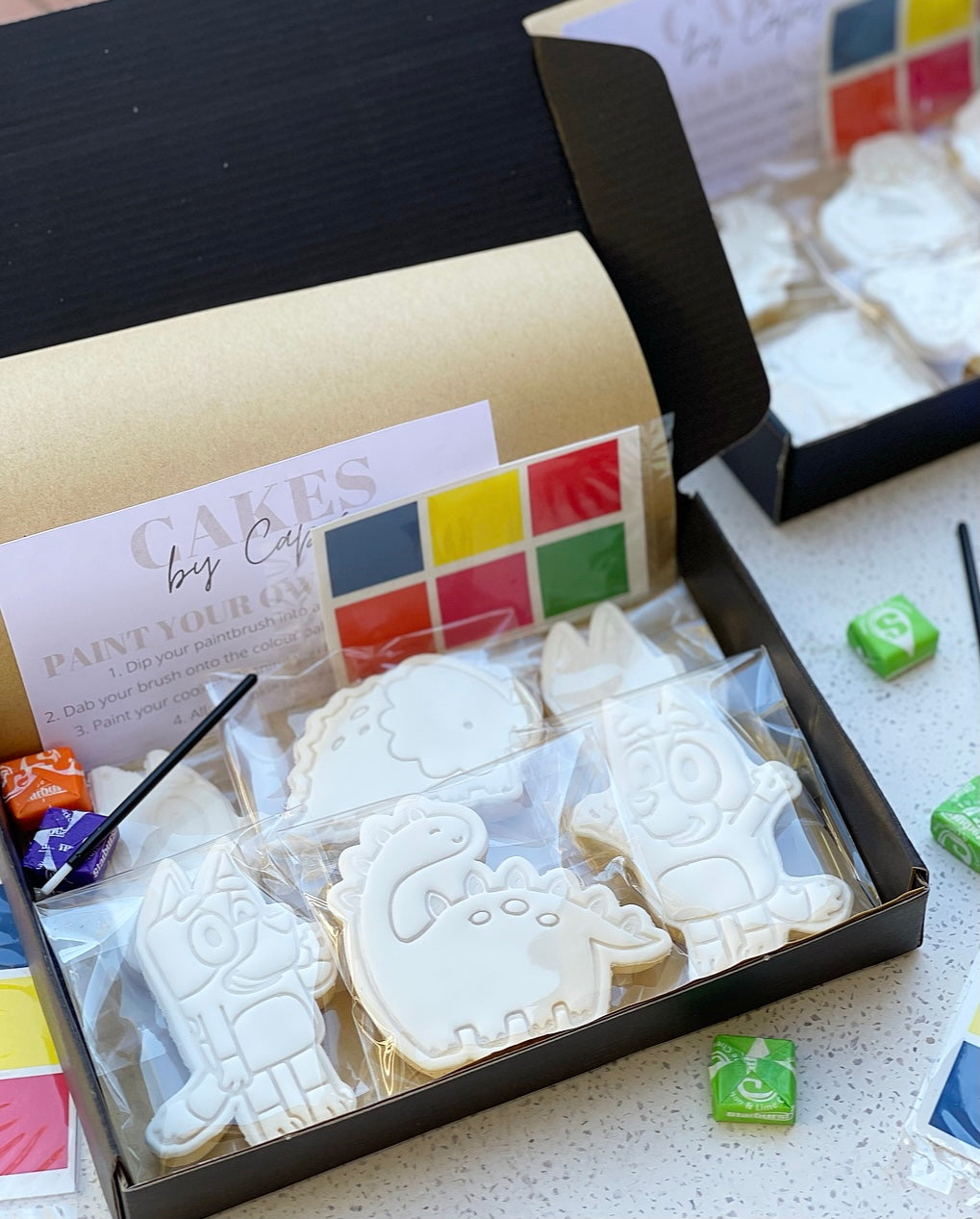 Pack comes with a number of cookies to decorate, a sheet of painting colours and a paint brush and some lollies! (Lollies in the box will vary)