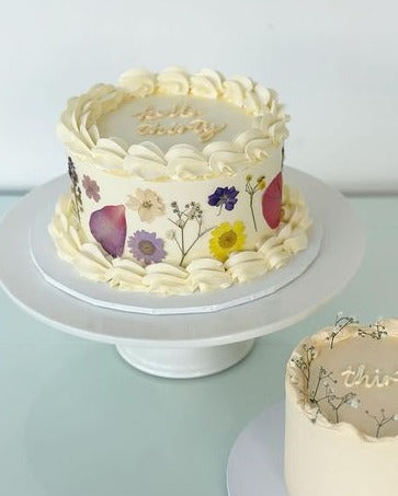 This edible flower cake is sure to impress with its stunning look and delicious taste. Made with an edible flower, this cake is sure is uniquely aesthetic and one of a kind