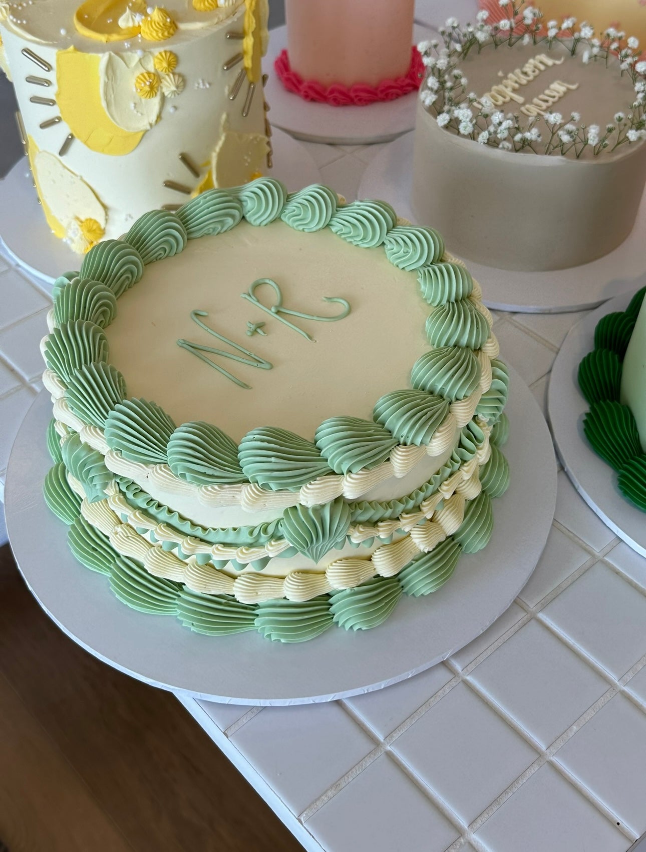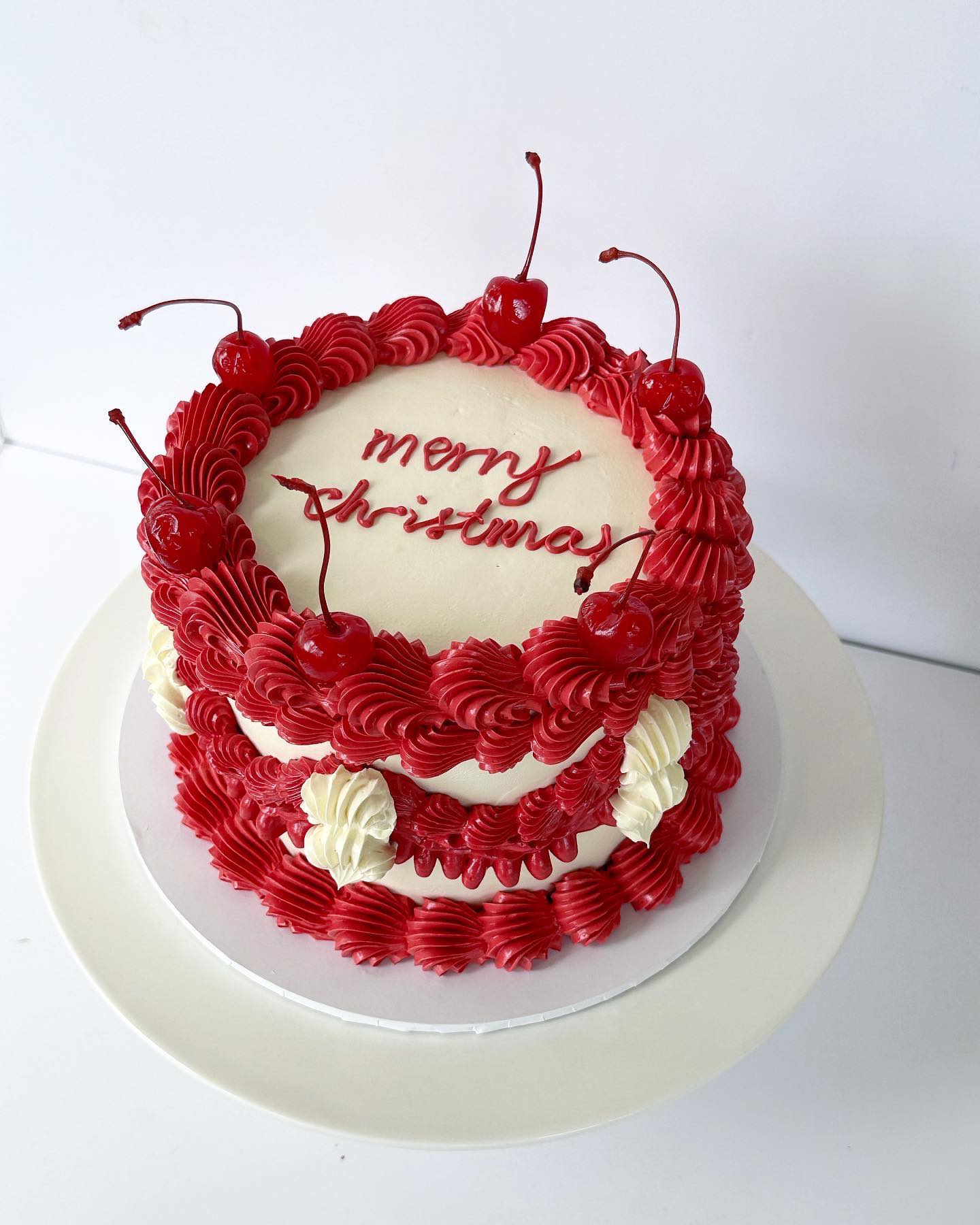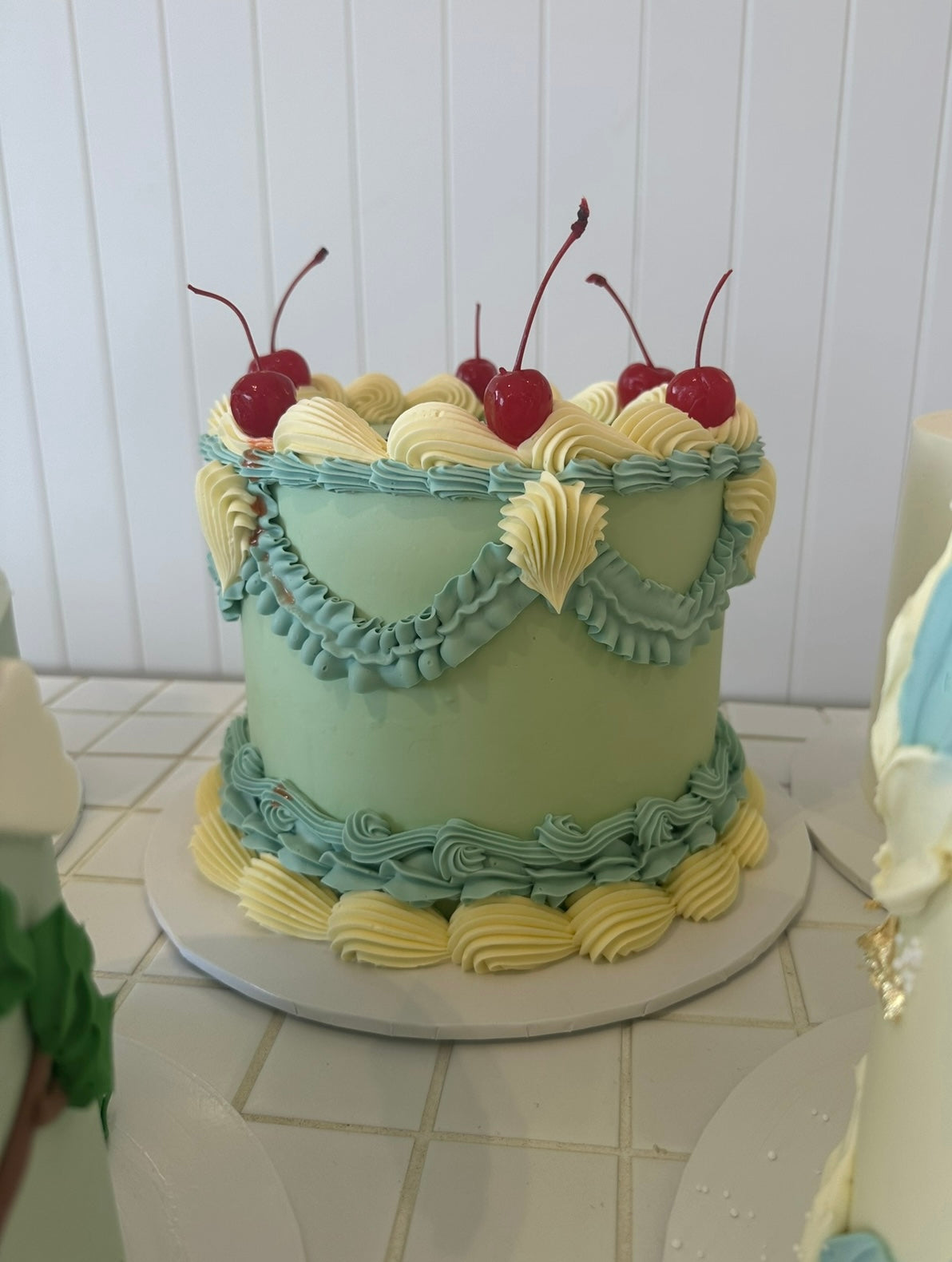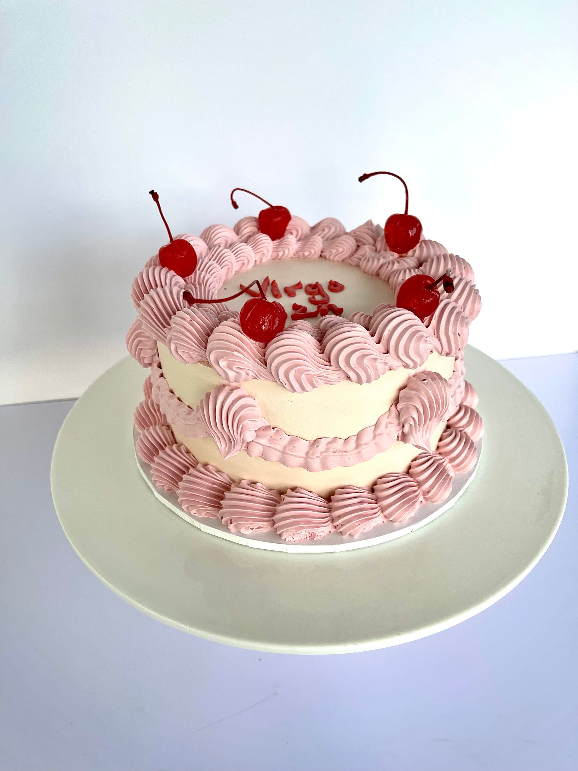 Please note: the 2 layer cakes may not have as much piping due to being shorter and having less space.