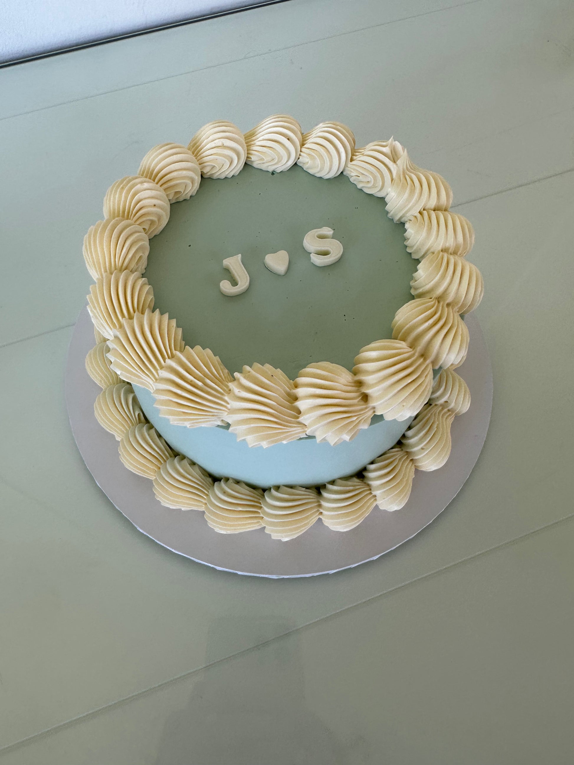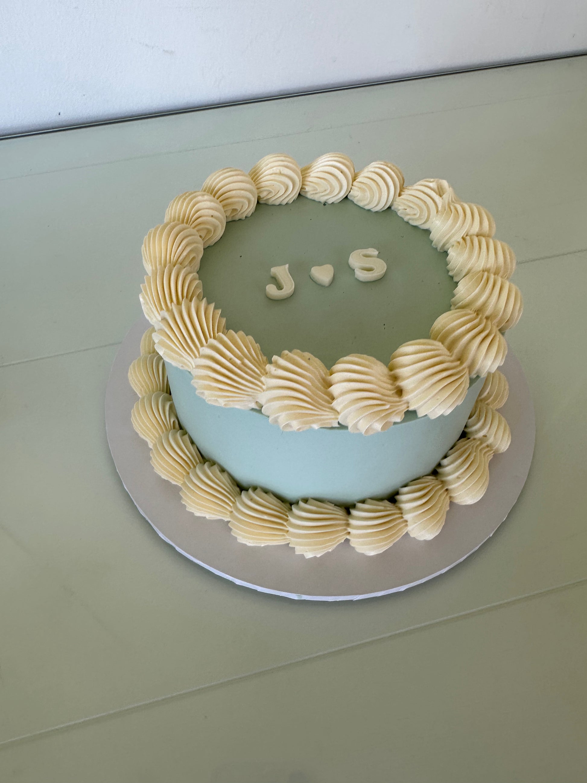 Included in the “simple” range is piping on the top trim of the cake and piping on the base of the cake. All text is included as well.