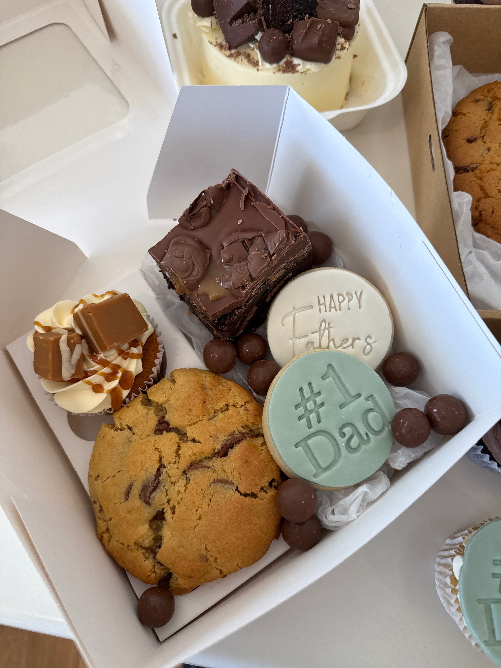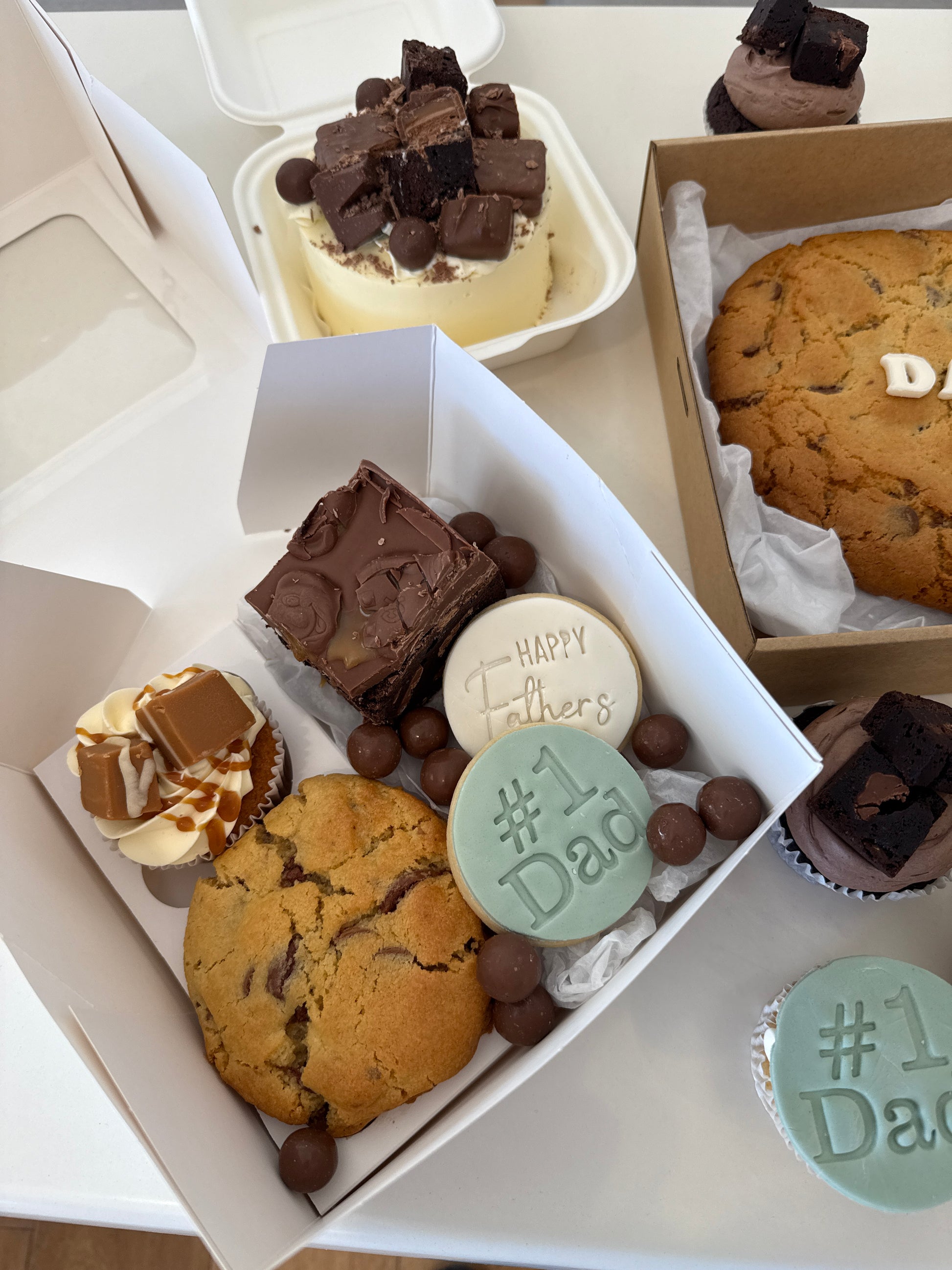 Vanilla cupcake, Caramel Cupcake, 2 brownies, 2 choc chip cookies and 4 sugar cookies