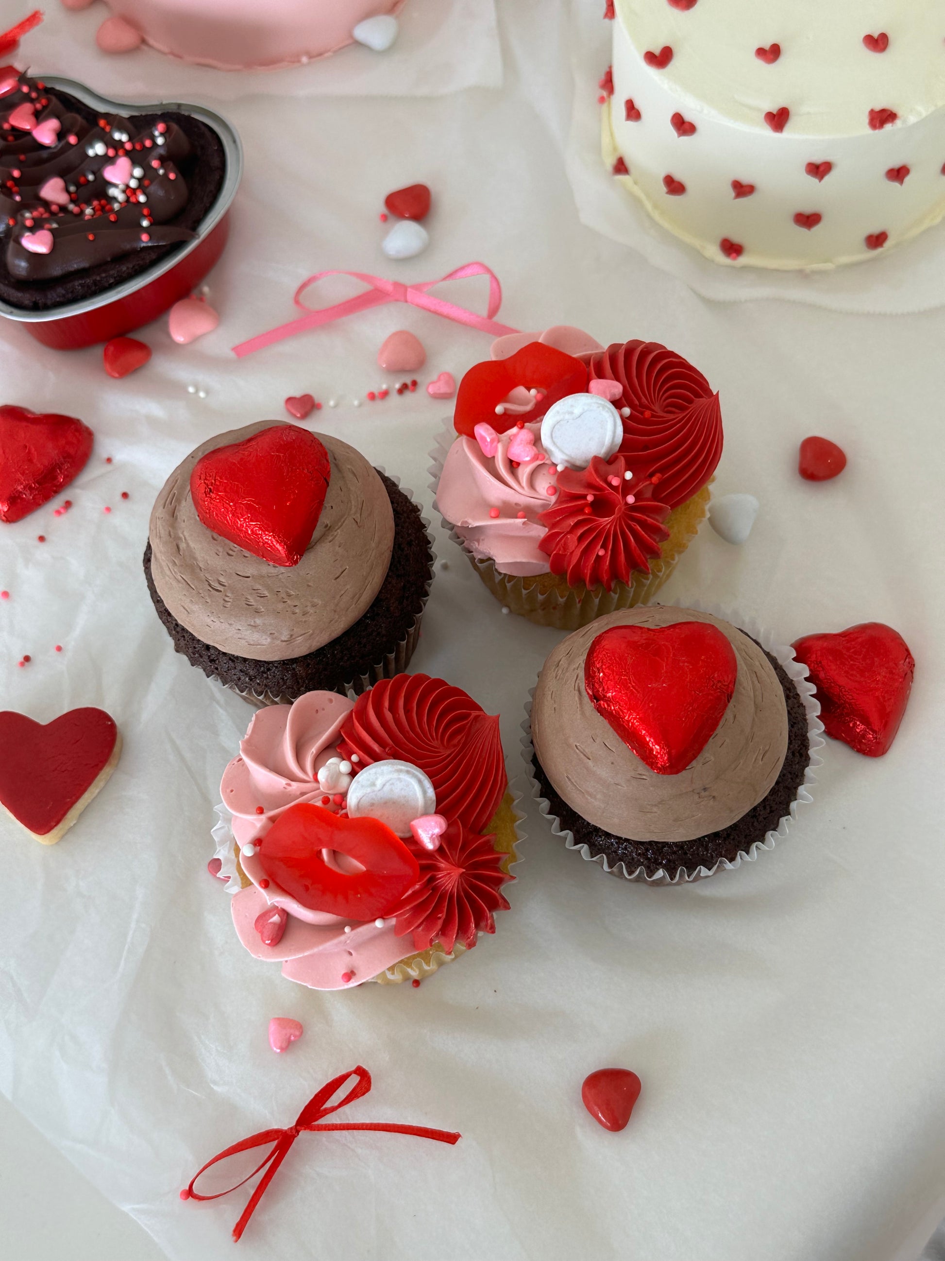 Indulge in our Valentines Cupcakes, a perfect mix of vanilla and chocolate cupcakes with charming and irresistible designs. It's a sweet treat for your loved one, and yourself (no judgment!). Don't miss out on these tasty and adorable delights!
